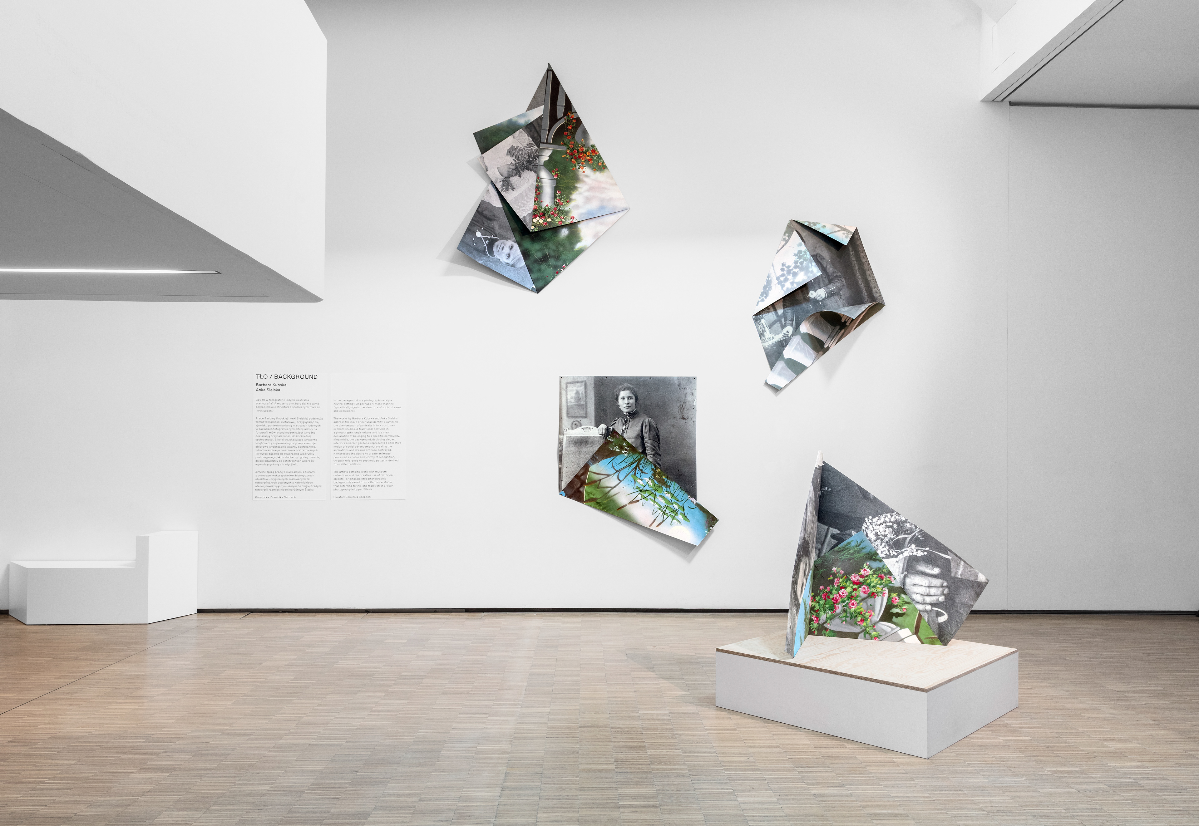 Odświętnie ubrane w stroju chłopskim – jakli, fartuchu, właściwym dla ich urodzenia, pozują do zdjęcia. Za nimi pejzaże malowane na tłach fotograficznych reprezentują zbiorowe wyobrażenie awansu społecznego, bycia w innej, lepszej przestrzeni – wnętrzu pałacu, salonie, francuskim ogrodzie. Fotografia nie ma reprezentować ich życia, wręcz przeciwnie. Błękitne powietrze bez śladu zanieczyszczeń, soczyste kolory, sielankowa atmosfera, choć z bliska – niezbyt wyrafinowane malarstwo. Jest w tym pewien dysonans. Deklaracja tożsamości zawarta jest w stroju, miejsce jest umowne. Byle nie tutaj.
